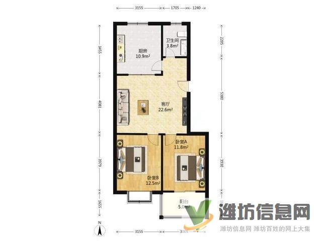 房子精裝修,2室朝陽,客廳北向,洗手間有窗戶,可做干濕分離。